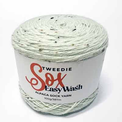 Yarn Details:Β Tweedie Sox is a lovely blend of 65% Alpaca, 25% Nylon, and 10% Irish Donegal Tweed, creating beautiful tweedy flecks throughout. The Easy Wash process makes the alpaca machine washable, combining luxury with practicality. Each 100g ball comes in a convenient cake presentation with generous meterage.